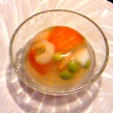 インターンシップに行ってる息子は外回りについて行っているので、今はお弁当を持っていけそうに無いようです。なので、私は毎朝 「楽」 をさせてもらっています。でも、出かける時間が早くなったので朝食の時間も10分繰り上げです。割を食ったのは夫だけかな。なので、ブログは楽天レシピに投稿したお料理を載せています。シーフードと野菜の寒天寄せ料理名:寒天寄せ作者:Levi-■材料(3人分)シーフードミックス エビ・ホタテ・イカ / 各2~3個トマト / 小3/4個枝豆 / 21粒(程度)粉寒天 / 2g出汁 / 300cc醤油 / 小さじ1/6塩 / 一つまみみりん / 小さじ1■レシピを考えた人のコメント180cc入る底が丸い器で作りました。具を増やせば記載の量の寒天液で4人分作れます。詳細を楽天レシピで見る夏らしくて涼しげなお料理でしょ。作ってみると意外に簡単です。是非、作ってみてください。