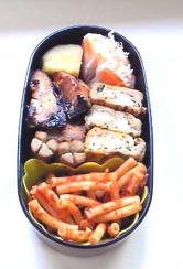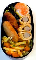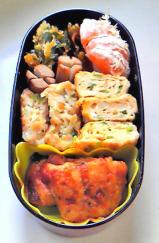 寒いですね(って、毎日言ってますね)東京も地域によっては初雪が降りました。幸い、うちの辺りは雨です。朝からしっかりカイロを貼って(もちろんスマートオンパックス)います。都心は雪が降っても積もらないようですね。良かった。 おかずは手前から・カボチャクリームのマカロニサラダ・ソーセージ巻きだし巻き卵・かにクリームコロッケ カキフライ・ほうれん草のおかか和え・みかんです。今週はおかずを1品増やして作ってみたら・・・ネタ切れになるのが早い~毎日、お肉とお魚を両方入れると毎日同じような感じになります。今日はいつものスタイルに戻して作りました。昨日も書きましたが、マヨネーズが嫌いな息子に作るマカロニサラダはカボチャを茹でて、軽く潰したものがクリームになります。さらにカボチャが具にもなるので一挙両得です(笑)今日はパセリも入れたので息子の評価が気になります。はい、すみません、手抜きです・・・じゃないんですよ。いつもは切って入れているかにクリームコロッケ。やっぱり切らないで入れたいので突っ込みました。ほうれん草のおかか和えが・・・息子は最寄り駅のJRでは無く、少し離れた私鉄に乗って大学に行きます。歩くと30分はかかるので、自転車を利用しています。なので、雨の日は雨具を着るのですが、一度濡れたら乾かすまで着ません。朝が雨だと帰りは着ないことになります。息子は家に帰るだけだから濡れても平気だと言います。でも、この寒さだし放射能がまだ降っているような気もするし帰りも着て欲しい。出かける前に釘を刺しておいたけど、どうなることやら。