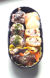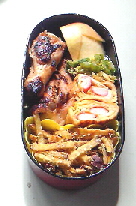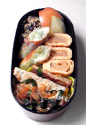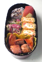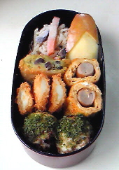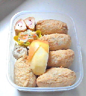 もう、木曜日ですね。一週間って過ぎるのが早い~でも、昨年の今頃は日にちの感覚がおかしくなったりして甥っ子の入学祝を送付し忘れてしまっていました。三月の頭に月末には送らなきゃって思っていたんですよ。震災で吹っ飛んじゃいました。一年経ってやっと元に戻ってきたって感じです。今日は稲荷寿しです。定期的に食べたくなるので、息子のお弁当に合わせて作ります。ご飯には人参・干し椎茸・ゴボウを煮て入れています。外からは見えませんが五目稲荷です。で、少しだけつけたおかずは・シュウマイ・リンゴ・ポテトサラダ・カニカマ巻きだし巻き卵 です。ポテトサラダは息子がマヨネーズを嫌いなので塩麹と粗挽き胡椒で味付けました。朝食前に酢飯と具を用意して、朝食後に合わせて炊いた油揚げにご飯を詰めました。作業をしていたら、出かける用意をしていた夫が「結局7年間お弁当作るんだ」と言います。『ひょっとしたら、就職してからも作ることになるかも』と、この春のアルバイトではお弁当を持っていかなかったが故にパンやカップ麺の昼食を食べていた息子の話を夫にしました。朝・夕にも野菜を食べさせていますが、ほんの少しなので全く足りていません。昼食も少ないけど食べないよりはマシ。だから大学生になってもお弁当を作っています。ほとんどの学生は学食などで食べていますよね。ちゃんと食べてくれるならそれでも良いのですが・・・・手間がかかります。