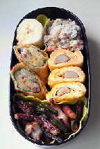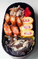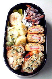 土曜日ですね。週末が忙しい主婦です。今日はさらにお弁当を作って朝からお昼まで動きっぱなしでした。すでに疲れている私。お昼寝した~い。おかずは手前から・イカゲソとニンニクの芽の塩麹炒め・ソーセージ巻き出し巻き卵・巻き巻きお好み焼き・おからの煮物・バナナです。お友達の金時さんが私の作った油揚げのキャベツ包みフライをアレンジしてお揚げさんお好み焼きを作ってくださいました。コレはお弁当にイイと思って早速作らせてもらいました。私はさらに先週作った油揚げの巻き巻きフライをアレンジした形にしました。キャベツボールも良いけど、これだと少量作れるのが便利です。もう少しするとお買い物にも行かなきゃいけないし。今夜は夫の誕生祝をするのでケーキを仕上げなきゃいけないし。ゆっくりする時間がなさそうです。頑張らなきゃ。