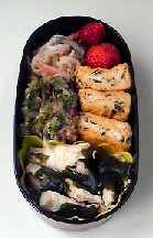 今日は土曜日でいつもはお休みですが、補講のために息子は大学へでかけました。なので、お弁当も必要~まあ、土曜も日曜も同じ時間に起きているので問題ないんですけどね。おかずは手前から・春雨の中華サラダ・塩鯖のカレー焼き・だし巻き卵・切り干し大根の煮物・イチゴです。最近はお肉のおかずが多かったので、本日はお魚のお料理にしました。冷凍庫にあった塩鯖をタンドリーチキン風のタレに漬け込んで焼きました。タレは小麦粉とカレー粉を混ぜて豆乳で練りました。鯖に味が付いているので調味料は無しです。塩がしっかり付いているからか中までカレー味にならずほんのりカレー風味でした。焼く時にカレー粉を振ったほうがカレー風味が効いたかも。再チャレンジしてみます。出し巻き卵は真ん中が白身で白く、青のり巻きで彩り良く仕上がりました。巻き方を工夫すればグルグル渦巻きになりそうです。渦巻きになると楽しそうですよね。頑張ろう!!イチゴはベランダのプランターで育てたものです。今年は冬に保温をしなかったし、春が遅かったのでうちのイチゴも遅めでした。でも、葉がぐんぐん大きくなって実がなりだしたので嬉しい誤算。数は少ないですが嬉しい実りです。