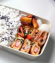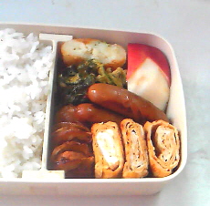 東京もやっと涼しくなってきたようで、今日は30度を下回るとか。今年の夏は暑かったですね。これから夏の疲れが出る「夏バテ」の季節になります。体調を崩さないように気をつけましょうね。おかずは手前から・カニカマ巻きだし巻き卵・チンゲン菜と人参・ブナピーの塩麹炒め・春巻き・スティック大学芋・なしです。これまではご飯とおかずを別のお弁当箱に入れていましたが、ご飯を詰めながら「詰め込めばおかずも入るかも」と思って、今朝はおかずを作ってからいつものお弁当箱に詰めてからこのお弁当箱に詰めなおしました。おかずが少し少なめですが、入るので一つにまとめようと思います。ご飯はその昔(笑)お絵かき弁当なんてものを作ってた時に、お弁当箱の蓋に海苔がくっついてしまわないように半分位上部が空くように作っていたんですよね。で、大学生になって絵を描かなくなってもご飯を入れる量はそのままでした。それに高校生の時よりご飯の量も少し減ったし。今日、帰ってきて感想を聞いてOKならこのお弁当箱一つにしようと思っています。