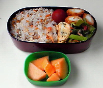 おはようございます。昨日は雨の一日でした。今日は上がって空も明るくなってきました。梅雨の走りでは雨が降らなくて水不足が心配されましたがこれだけ降れば水甕も復活したと思うのですが…ニュースでは足りないは報じてもその後が無い!!どうなったか知らせてほしいです。ご飯は混ぜ込み稲荷寿司おかずは、出し巻き卵、小松菜と干し小エビの塩麹炒め、イカフライ、ミニトマトデザートにレッドメロン、です。昨日は帰省されているアメリカ在住のブログの友人とうちでランチをしました。その時に作った稲荷寿司の具と揚げが残ったので揚げを細かく切って混ぜ込み稲荷寿司にしました。暑くなるとお寿司が美味しいですよね。お酢は防腐作用もあるからお弁当に持って来いです。おかずはいつも作っているものばかり…こんな日もあります(笑)レッドメロン、これかなり安くなっていたんですね。美味しくないのかと思ったら、熟れているから早く売りたかったようです。だから、すっごく甘い♪昨日のデザートの残りをお弁当にも入れました。でも、友人はメロンアレルギーで食べられないそうです。知らなかった~なので、もう一品用意してあったういろうのみな月も出しました。メロンのアレルギーって初めて聞きました。考えると私もメロンを食べると喉がシカシカする。メロンの酵素に反応しているのだと思っていました。これってアレルギーだそうです。だからたくさん食べると症状が酷くなるので注意が必要だそうです。たまにしか食べないから大丈夫かな?食べるの控えた方が良さそうです。ういろうに小豆がのってて美味しいです。京都通ご用達、京都の旬を味わう伝統の味京みな月6個箱【簡易包装・...価格:1,240円(税込、送料別)