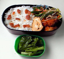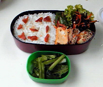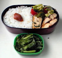 おはようございます。今日は午前中が雨の予報ですが、まだ降っていません。仕事に出かけるまで持つかな?持って欲しいわ。おかずは、出し巻き卵、鰯の南蛮漬け、ごぼうと板麩の炒り煮、ブロッコリー蕪とキュウリの塩麹漬け、ミニトマト、です。生活クラブでカタクチイワシを買いました。小振りなのでお弁当にも使いやすいし煮ても美味しい♪早速、二度揚げして南蛮漬けを作りました。ごぼうと板麩の炒り煮は昨夜のおかずの取り置きです。この板麩は区の環境フェアで買ったもので、大きいのにお手頃価格。うちの区は庄内地方と姉妹都市なので区のイベントで物産販売があるんです。味も良くてもう一つ買っておけばよかったと思いました。秋のお祭りに出るのを期待しておきます。