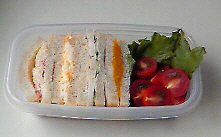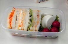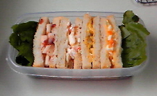 おはようございます。今日は曇りですね。気温が下がって長袖でないと寒い。こう気温差があると風邪に注意ですね。サンドイッチは右から、玉子、カレー味のキャベツ、レンコンと海老リンゴとイチゴジャム、です。マンネリ化していたサンドイッチの具に新種が登場~カレー味のキャベツとレンコンと海老です。レンコンは以前から作ってみたかった具でキャベツはホットドッグに入れるのを採用サンドイッチでも美味しいと思います。今日は夫が仕事になった上に早めに出かけるので朝食も早めにします。さあて、そろそろ食べる用意をしなきゃ。今日も一日頑張りましょうね。