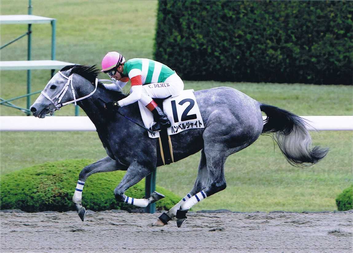 キャロット恒例の優勝記念写真が届いたので紹介します。今回はハンベルジャイトの未勝利戦です。ゴール前の写真。ウィナーズサークルの写真です。出資馬で芦毛の勝ち馬は初めてなので嬉しいです。