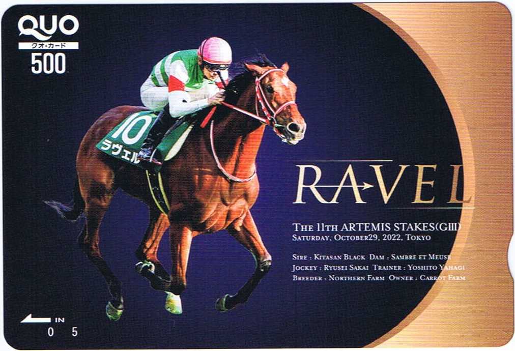 アルテミスS優勝記念で申し込んだQUOカードが届きました。まあ、しばらく前に届いていたんですがアップするのを忘れてました。ザダルの重賞勝ちの時も申し込んでその時も思ったのですが、図柄はとても良いんですが背景はそのままレース中の競馬場にしてほしいですね。その方がレースの優勝記念ぽくて良いと思うんですが。