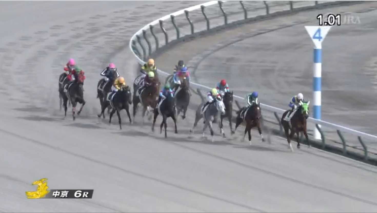 道中は逃げ馬を前に見て内側に馬を置いて3番手をキープします。