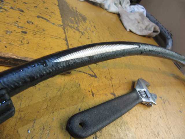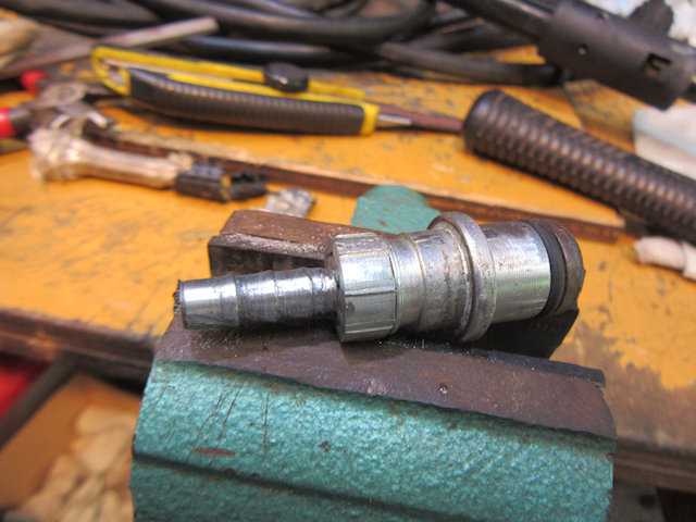 高圧ホース、ナイロンの2重編組打ちで非常に頑丈な作りだからと口金外側を加工して使用できないか挑戦してみたが・・