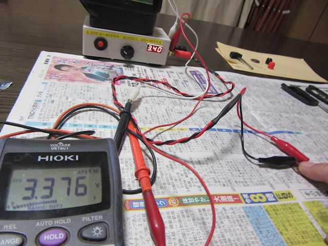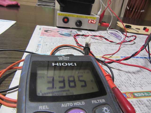 充電時の温度を指で測りながら行ったが、この直流電源では人肌温度にはならなかった。