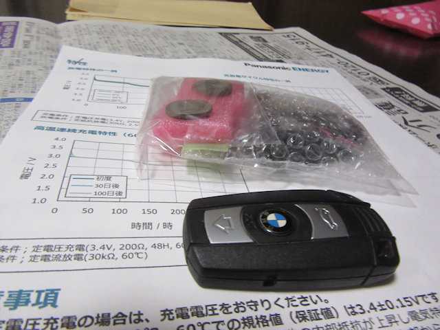 電池2個のうち、メインキーのは生きてたが、予備キーの電池は半分死にかけてた。