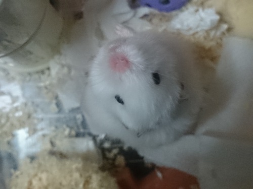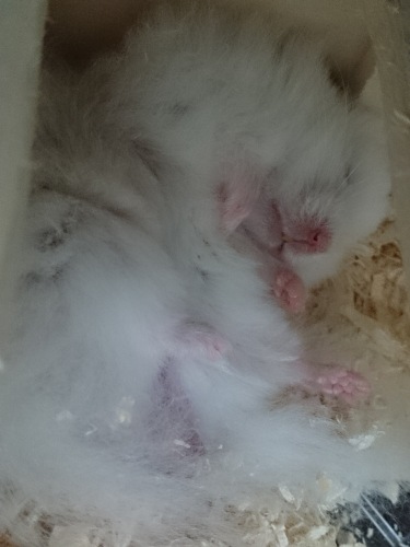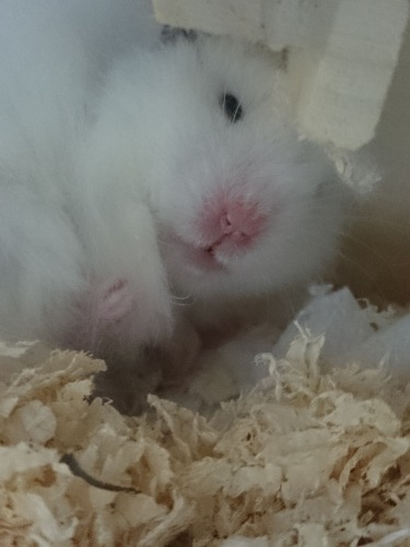 雪之丞を掌に乗せてたら、袖口からズンズン登ってきました。私のフリースの袖の内側に床材がくっついて、チクチクしまくります