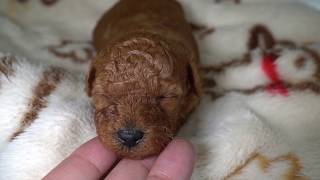 2017年10月26日生まれのトイプードル レッドの女の子です。人が大好きな可愛い子です。動画ぜひごらんくださいね!この子の詳細はこちらをご覧ください。ちょっときつめの顔に見えますが、、、これはカットで変わりますよ〜お鼻も真っ黒です。2匹兄弟でもう1匹は男の子です。だいぶしっかりして来て歩くようになって来ました。まだ、足が意思とうらはらに思うように動かない感じがとてもかわいいですよ。12月3日の撮影時の体重は750gでした。兄弟で仲良くあそびます。人が好きですぐに寄って来ます。指をお母さんのおっぱいと思うのか口にいれて咬んだりしています。もう歯が生えて来ていますよ。とってもかわいい子犬ちゃんです。ぜひ、動画もご覧ください! 本当にかわいいです。2匹兄弟で、、、男の子と女の子がおります。ぜひこの子に会いに来てやってください。この子はPRA発症しません。PRAというのは進行性網膜萎縮症という目の病気で、最悪は失明してしまう病気です。当犬舎では遺伝性の病気の出ない交配を心がけ健康な子犬の産出に努めています。また、生後60日までは親と兄弟と一緒に過ごしますので、社会性も身につきます。45日前後からは子犬たちだけで遊ぶ時間も作り、私たちもよく抱っこをしたり触ったりしていますので人馴れした性格の可愛い子に育ちます。警戒心のないおおらかな子になると思います。きっといいパートナーになってくれると思います。ぜひ、この子に会いにきてやってください。