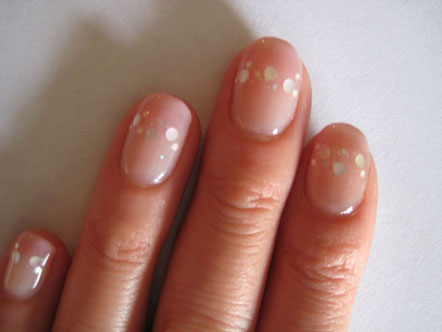 今日は、薄いピンクのグラデーションにドットのラメをつけてもらいました。う~ん、満足、満足![]()