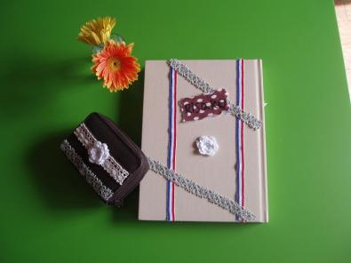 写真の左のは、私のお財布。無地でつまらなかったので、綿テープで飾ってみました。制作中に、下の子が、帰宅。。。あたしもやる~![]()