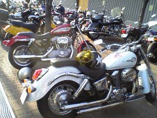 ナオちゃんと遊んだ!なんて浮かれ気分レポは昨日のでオシマイ。昨日のレポがソフトなら今日はハードで( ̄ー ̄)y-~ いってみる??ハードったってバイクね。さてと・・・(--)おやすみ・・じゃなくて!まずはキャブね。この間、パイロットスクリューを調整してみたのは話しましたがどうもシックリこないままでした。というのも、仕事の合間に近所をグルっと回って試す程度しか出来なかったしその後 雪に降られてしまったので対策を取れずでした。浮かれ気分でヘラヘラ走っていたワケでは御座いません。ポケットにはマイナスドライバー!!チョコっと調整しては走るという連続で現地入りを果たしていたのです。その甲斐あって、到着する頃には ほぼベストな状態でした。そのまま走り回っての帰路。日暮れと共に気温も低下。すると出始めました 息継ぎが・・・完全にストップしませんが、たまに息をつきます寒い季節はアタリを出しにくいのかもしれませんね。ま、現状で90%というトコでしょうか・・・ちなみに納車時設定されていたアイドリングは1000rpm。その後 低めに800rpm付近にしてました。他のスポーツスターの方が どのあたりに合わせているのか知るところでは有りませんが、900rpmから1000rpm付近で症状が消えてくるようです。で、リアサス!!前回レポで ほんの触り程度感触を味わったんですが、昨日は結構考えさせられました。これから先 記す事はあくまで個人的見解です。直進については、とにかくドッシリとした安定感が凄いです。ノーマルサスも安定性は有りましたが、落着かない感じが否めませんでした。極低速で走る狭路。早い話がスリ抜け。リアがドッカリと座っていて、フラつきが明らかに現象。それぞれ乗り手の作ったバイクのポジションによって捉え方は変わると思います。が、リアの安定に伴い 扱い易くなったのかフロントもフラつきが減少。乗り手の感覚が変わった事による乗りやすさとでも言いましょうか・・・交差点などの右左折。小回りがラクにできます。怖さ激減です。常に安定してます。針路変更。従来のスパスパ切り替えしが出来る感覚とも違います。スパスパこなせますが、軽く動くというよりも行きたいように着いて来るというか・・・とにかく素直に動きます。ノーマルのフロントサスとの兼ね合いですが・・・今の時点では、バランスが取れている気がします。同じようにフロントもオーリンズのスプリングと入れ替えればよりメーカーが言いたいであろう操作感が出るのでしょう。しかし、自分で知る範囲のフロントサス。どれもローダウンしてしまいます。組み込む事によって、よりしなやかなスプリングで沈み込みも減るのではないかとも予想されますがウチのバイクの場合だとリアサスの長さがノーマルと同じなので尻上がりになります。それによって小回りが利く、キビキビしたハンドリングに振られる。キライでは無いですが、乗りやすさと扱い易さは速さにも繋がる。自分が乗りやすいのは現状のバランス。ですからソレを組み込むのはベターでは有りません。組んでしまえば、もしかしたら予想以上の結果が出るかもしれませんが少なくとも今は その時では無いようです。しかし同じ長さの硬いスプリングを組んでしまう・・・というのは避けたいのです。リアが硬くてハネるのは、乗り手の加重で抑えられますがフロントがハネると・・・フロントの沈み込みを抑えて、今の硬さのまま・・・となるとインナーチューブ内にスペーサーのようなブロックを組み込んで縮めた状態で硬くするという方法が安易に考えられます。しかし、これも試さなくては解りません。ですから、自分としてはフロントは現状で良さげです。ただ一つフロントに加えるなら・・・試してみたいのはスタビライザー。フロントフォーク間を繋いでしまうパーツでヨジレを緩和し、2本のフォークを均等に動かします。似た考えなのがクルマでいうトコの ストラットタワーバー。サスの取り付け位置 左右をバーで張ってしまうパーツです。余程鈍感でない限り、効果は解るパーツです。ヨジレと一言で言っても、ハンドルに伝わるタイヤの幅が良く解るシットリした手ごたえになります。この感じをフロントフォーク強化によって得られるかが期待されます。リアそしてフロントがガッチリ決まると更なる変化が欲しくなる。良くなったと言われているが、まだ甘いと思う部分。ブレーキ昨日1日走って欲しくなったのは新しいマフラーサンダースライドで軽快に走るその前にブレーキを強化して、より繊細に確実に扱える事への欲望でした。もしかしたら、マフラーよりも先にブレーキを・・・かもしれません。以上、理屈をこねた日記でした。