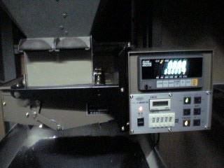 米を計量する為のはかり。100Kgまで対応のはかりを今まで2台、他1台を使用してきました。30Kgの計量が殆んどでしたので、このサイズのはかりで対応できてました。しかし最近取り引きを始めた仕出し弁当業者に納品するには1袋5.6Kgに計量して包装した物を納めます。100Kgのはかりでも計れるのですが、少量の為正確さに欠けます。なぜ5.6Kgなのかと言いますと一袋が1度に炊く炊飯器の量なのです。丸ごと研いで、釜にセットしてしまうという算段。普段から計量と水加減の関係に正確さを求めるので、現状でははかりに問題が出てきました。納品する量も多いのでココは1発設備投資!!正確に計れる計量器を設置しました。右側の操作パネルで指定した重量を、精米したタンクから適量に計って排出します。計り始めには多く、段々少なく 最後には微調整という3段階での計量。いや便利!そしてエライ!!これで取引先にも信用が増すというもの。( `0´)/~~ ピシ~!働けぃ!!
