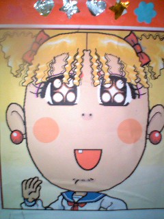 子供の学力低下が騒がれております昨今。我が家でもキッズの教育について論議が続いております。小学校では授業の一環でPCを操作するための時間が少しばかりでは有るが設けられている。英語も週一程度で有るとか・・・幼稚園でも書道をはじめ、PCの操作も教えてもらいます。下の子が幼稚園でPCを駆使し、家に作品を持ち帰った。(;--)・・・こ、これは・・・往年のセーラームーンとでもいうべきか・・・それとも新種の子ギャルとでもいうべきか・・・現代版おてもやんと呼ぶべきか・・・(;-3-)くっくっく・・・(T<T)ギャハハハハハ!!!!!!!何故か、アゴヒゲあるし・・・歯が1本だし・・・しかし、一生懸命彼女なりに頑張ったんであろう。笑っちゃイカン!(;_ _)でも こりゃタマラン・・・