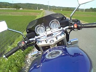 先日のツーで一緒だったCBR600RR2度目の走行に挑みました。前回は、国道を軽く流して・・のゆっくり走行でしたが昨日は、そこそこコーナーの有る道を走りました。主に上り坂がメインのコースだったのですがそのせいも有ってか倒しこむコツというかコーナリングのキッカケみたいなのを少し掴みました。車体の軽さからなのかさすがレプリカというだけ有って肩をインに落とすような感じだけでクルリと旋回し始める。慣れないうちは、ハンドルに突っ張るような体制で走行していたがじょじょにシートやステップに体重を乗せハンドルには添える程度の感覚で扱うのが良いらしいのが、少し解り始めた。相変わらずクビが痛くなるけど(^^;)トシか・・・なんだろ、もっと違うカンジで走るのが正解なのかな?!にしても、おっかなびっくり走らずに済んだワケです(--;)エンジンの性格はネイキッドとは、ちょっと違うカンジ。回転が上がるのも下がるのも ピュン!!ピュン!! てカンジでしょうか。どういう事かっていうと・・・ 回したくなる(^^;) XJRみたいに下からゴリ押しの加速じゃなくて瞬発力が有りますね(^^)コレもまた楽しいバイクですな!