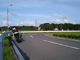 いつも通う直角コーナーココは何度通っても滅多にキレイにクリアできない。けど、クルマも含めて路上を走り回ってる期間は結構永い。上手く抜けるラインを掴み切ってるトコだって有ります。 下りのまま左のブラインドに入り視界が開けると同時に緩く右コーナー直後左コーナーの先端で下り切り上り始めの右コーナー最後は左コーナーで抜けて行くというわりと細かいS字が連続したコース。 忘れた頃にガードレールに突き刺さるクルマが現れます。 配達の軽トラでもうまくライン取りしてやれば大きなクルマでも置いて行く自信が有る所。 バイクで差し掛かった時クルマが接近してきてピッタリと後方に着いた。最初のブラインドに入った速度が制限プラス指3本程。抜けて緩い右コーナーは車線センターへ直後の左コーナーはコーナーの底を突くカンジで進入して続く右の上りコーナーへ差し掛かる。 このあたりまで着いて来るヤツは多い。 差し掛かった所から左に回りこむ最後のコーナー カーブに合わせてハンドルを切りたくなるバイクも切り返したくなるところ が、 クルマでもバイクでもここから一気に直線で抜けられるラインが有る。 上手く掴んだところからスロットルをガバっと開けてやれば抜け切った後に有る大きな右コーナーは余裕でケタを変えたスピードで進入しそのまま続くストレートへと繋げられる。 さすがに軽トラじゃ無理が有るけどそれでも普通車を置き去りに出来る。 (;^^)ま、その後のストレートで追いつかれちゃうけど この場所だけは自信が有るんだよねぇ(^^) (;^^)けど煽らないでね