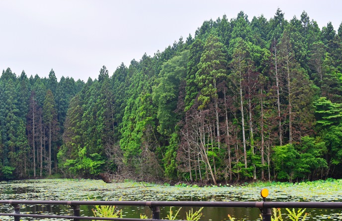 天真名井。 瓊々杵尊が高天原から高千穂に降臨した際、この地上には水がなく、瓊々杵尊は再び高天原に戻り、天真名井(あめのまない)の水種を高千穂、出雲、伊勢に移した。雨飲まない? 支えて居る。 高千穂の天真名井は、樹齢1300年のケヤキの根元から湧き出ている。 石で閉じられている。 宮崎日日新聞を眺める神の石像。 山に雲が優しく覆いかぶさっていた。 川登棚田群。 鉾神社(天岩戸五社)。 日子穂穂見命(山幸彦)とその配偶神豊玉姫命が祭神。神武天皇は孫。豊玉姫命は瓊々杵尊の娘。 天岩戸五社とは、天岩戸神社(西本宮、東本宮)、鉾神社、落立神社、二嶽神社、石神神社。 常光寺の滝。 別名「白糸の滝」 落差37メートル。 横からも滝。 滝の手前にはヘルメットをかぶったヘルメットお地蔵さんがいる。あら?写真消してもた。 ぐんぐん、細い道をぐにゃぐにゃ登っていく。車の温度は―3度になった。 県境の峠に来た。標高1000メートル。 宮崎県から大分県に入る。
