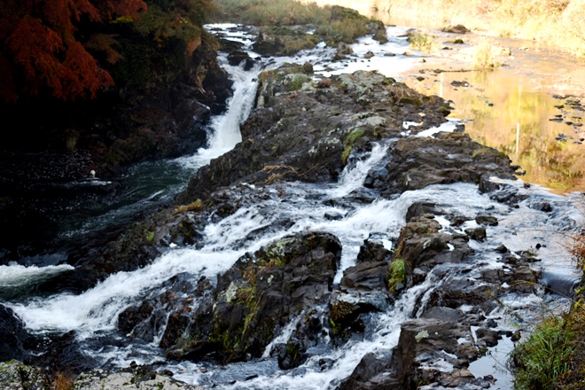 馬門の滝。那珂川支川の逆川。道に駐車スペースが付き出しており(2,3台停められる)、そこから滝が見える。安山岩の岩滝。高さは7メートル、幅27メートル。前も一度茂木町を通り過ぎ、那珂川町に抜けた。白糸の滝。烏生田川が那珂川に合流する付近にある。大瀬橋の下にある滝。幅約10メートル、落差約15メートル。滝を見下ろす。坪淵の滝。林の中にあり、少し悪い道を降りていくと、見える。落差10メートルの斜瀑。