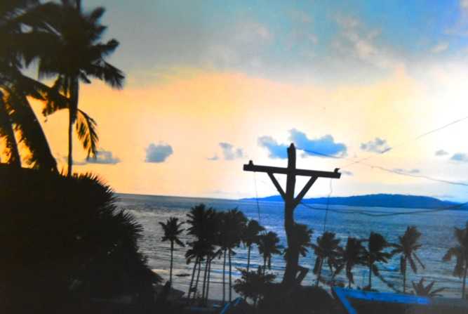 宿屋のおばさんはワタシを覚えていて、再来を喜び、彼女の家の隣のバンガロウを貸してくれた。もっとも便利なのだが、夜になると、波の音と風の音がが心地よく響くわけがなく、50メートル先のディスコの音がガンガン漏れてくる。勿論、ワタシは毎晩少しだけビールを飲みに行き、舞台でビキニで踊る女性たちと訳の分からないトークをして、一人、静かなビーチを波際沿いに歩く。朝は、子供たちがワタシのバンガロウをノックしてきた音で起き、とりあえずその子供にビールと煙草を買ってくるよう命令し、駄賃をあげる。適当に起き、テラスでぼけっとしていると、ややもすると夕方になってしまうので、海に浮かぶイカダのレストランまでボートで渡っていく。ビールを飲んで、海を覗くと十数メートル下まで見え、珊瑚で埋め尽くされている。飛び込むと怖いぐらいの海。
