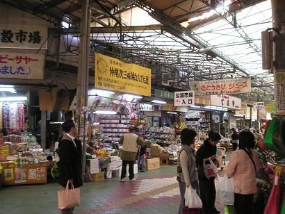 市場は、昼過ぎのためか閑散としていたが、食堂や肉、花屋、魚屋、布屋、薬屋、もやし屋、雑貨屋がアーケードの中に狭しと並んでいる。そこからかなり歩くが、開南のバス停近くにもの「農連市場」があり、JAがやっており、これこそ「市場」という市場である。この市場は観光客はほとんどなく地元のおじぃやおばぁが市場内にお店(お店というか、ゴザを敷いて野菜や果物を売っている)がある。