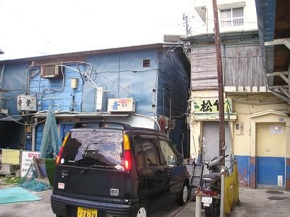国際通り。ここをするりと抜け、北側に行く。北側には、十貫瀬がある。現在は、マンションになったり、更地になったりしており、社交街時代からだと思われる店舗が一部見受けられるだけである。この社交街は、復帰前までは沖縄の人が通う一種の売春街だったと言われており、当時のお代はラーメン一杯付きで1ドルだったということである。更に北部に向かい、前島、松山に足を伸ばす。この辺りも飲み屋が密集するが、普通の日本のどこにでもあるような飲み屋街である。