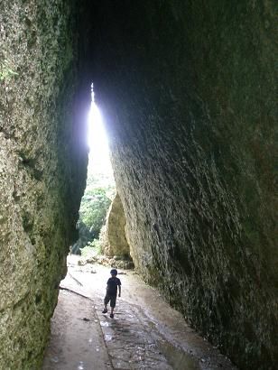愛媛大学探検部が発見したこの洞窟も、観光のため、更に観光道を延長され800メートルになり、歩きやすいように何万年もかけてできた鍾乳洞をポキポキと折って道を歩きやすく整備されているのである。坑道に入っていく入り口は、牧志公設市場の臭いがするのであった。昔、何度となくヘッドランプにヘルメットをかぶりつなぎを着て洞窟に潜った記憶が甦ってきた、ということもなく、秋芳洞のようにバラエティに富んでいるということもなかったのであった。しかし、涼しいことはいいことだ。