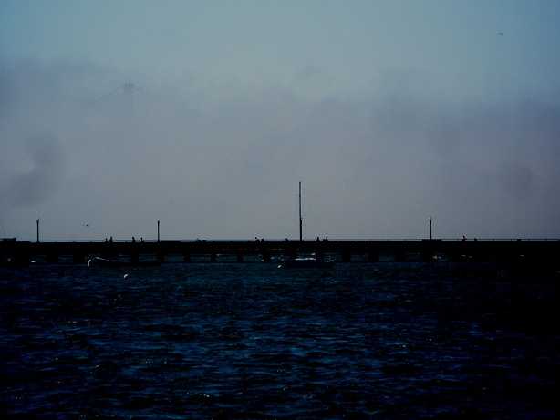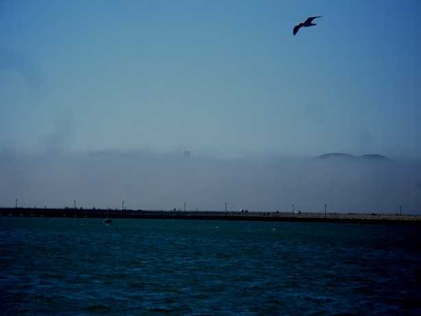 オカン、霧で見えんわ、金門橋の頂上だけやわ。ホンマヤネーハハハ(外人ではないけどカタカナ)。