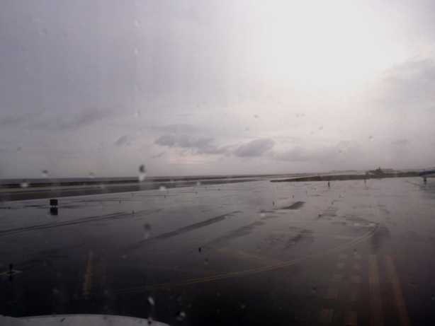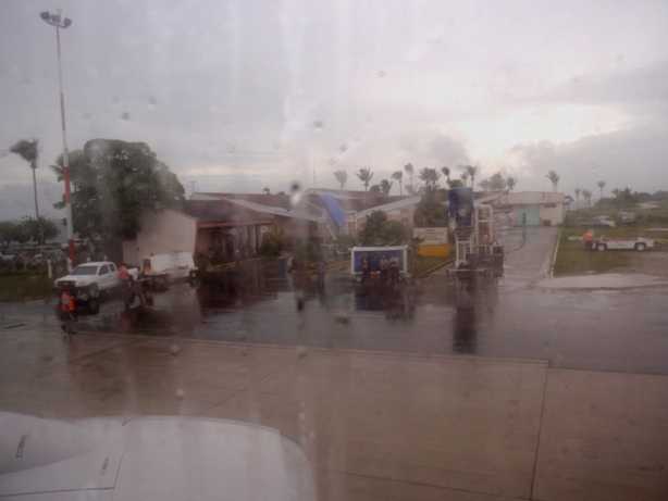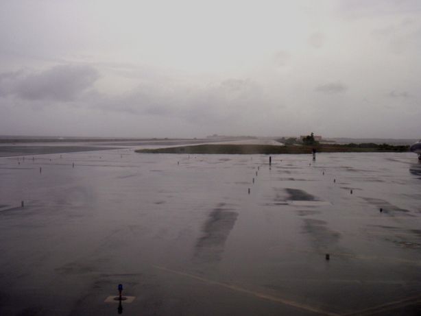 124席ある小型飛行機は、まさしく、イミグレ建物横付け。何せ1日、2,3便だからね、それも国際線のコンチネンタルと国内線の自国便のみで、自国便も置いてないので、基本空港に飛行機はない状態。