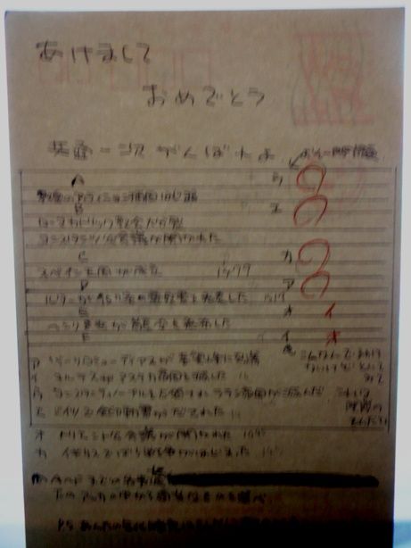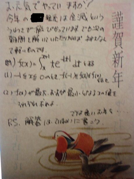 受験ともなれば、すぐ年賀状に問題を書いてくる奴ら。(彼は、1浪して阪大に行った)