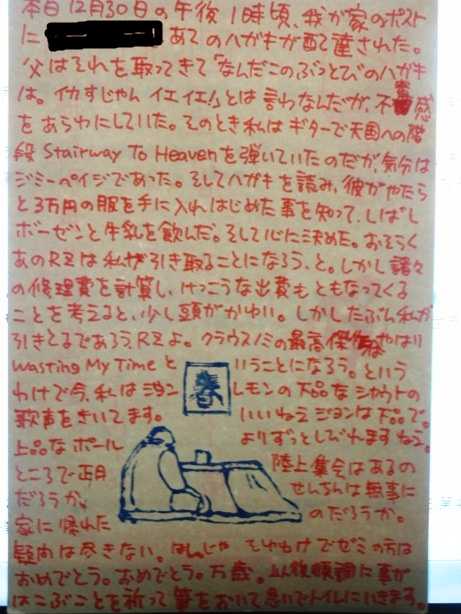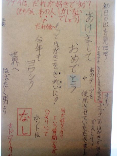 ヘビメタ君からは同じような内容のものが今年も来ました。彼は燃えているので年賀状少し燃やして出すと返ってきました。なので、直接持って行きました。