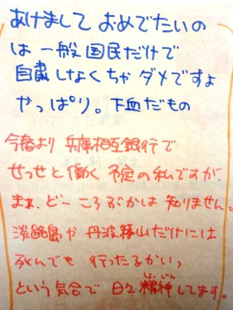 大学 に入るともう年賀状も真面目になりつつある。どこかの風任さんから