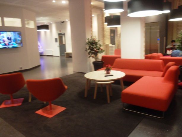部屋が狭くて何もないので、1階のロビーにて、皆さんくつろいでいる(写真は夜中なので人はいないが、人で溢れていた。それも、TVみたりネットしたり、することなさげに、ぼーっとしている感じ)。