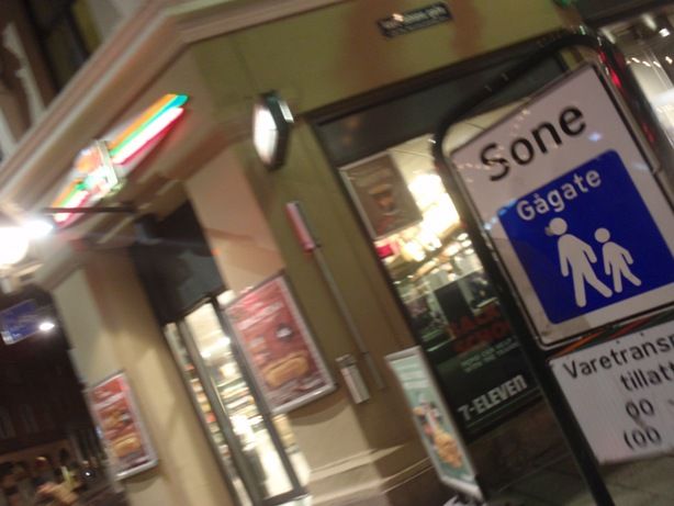 ジャイプール(1986年訪問済)という都市名のついたインド料理屋。1階は多分、ノルウエーオリジナルのファストフードハンバーガー店。値段チェック、高っ。