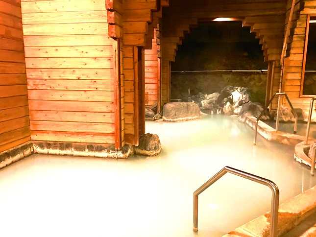 夜は気が付かなかったが、結構な人が温泉に来ても、広いのでスカスカに見えるところがリラックスよ。湯煙で、2,3メートル先が見えなかったのもある。