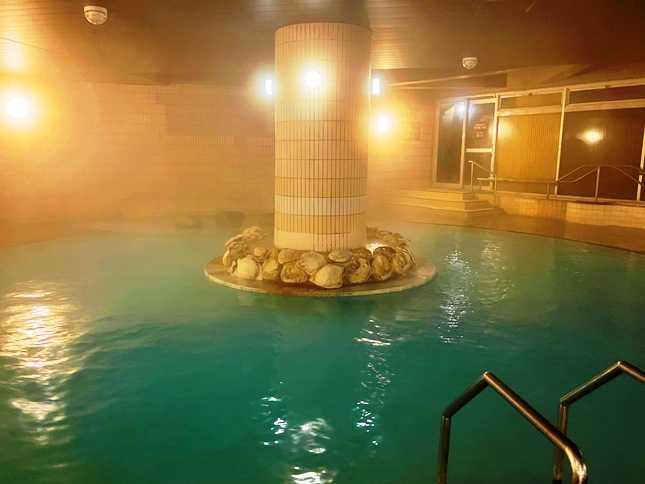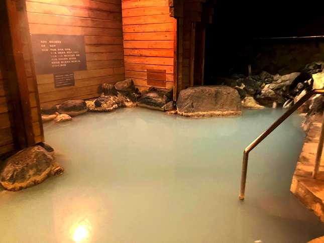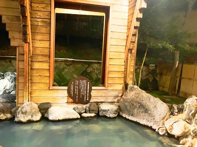 露天風呂。露天風呂に入るまでの外気が寒い、泥ぱっくもできるが、寒くて泥パックできるかいな。