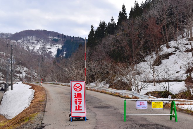 石川峡 通行止めでした。入り口工事車両で塞がれてました。