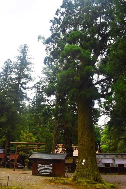樹齢2千年と伝えられるご神木。火災や台風で死にかけたが、回復施術、長寿の遺伝子を持つ小枝を採取、接ぎ木・挿し木で若木を誕生させている。