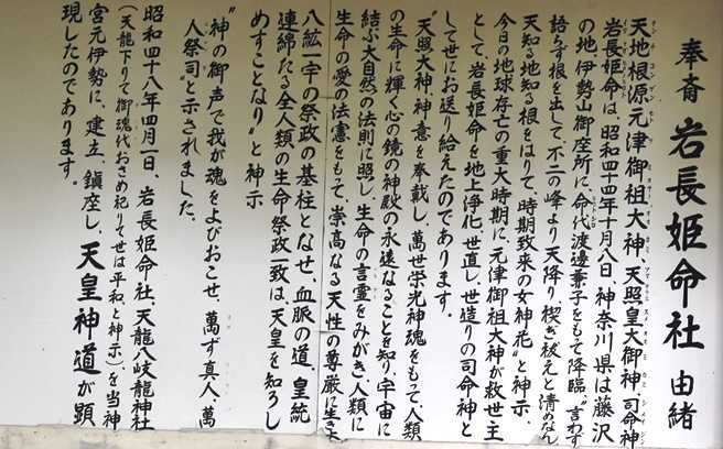 岩長姫命社。天皇神道は宗教団体だそうで、元伊勢神社とは関係ないようだ。