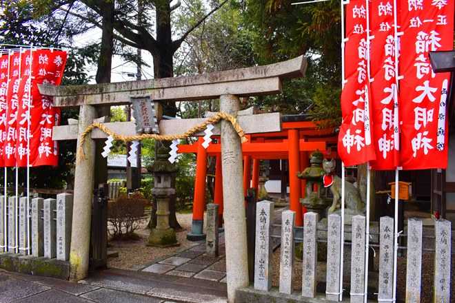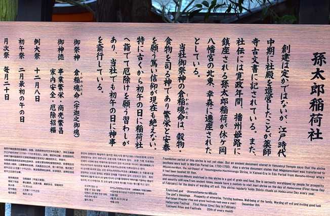 平安時代中期藤原頼行によって 下野国佐野(現・栃木県)の唐沢山に祠が建てられ、その子孫である佐野孫太郎義綱によって守られた神が、後に姫路城下に分霊され、江戸初期にここに移されたという。