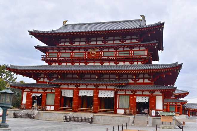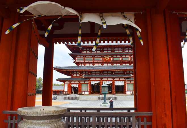 飛鳥の藤原京から、平城京への遷都後の8世紀初めに現在地の西ノ京に移転してきた。