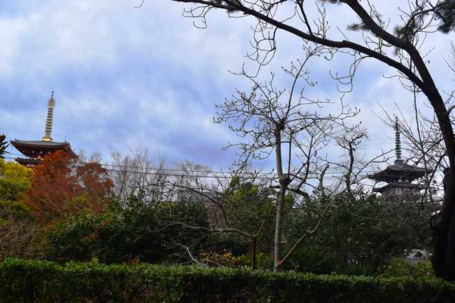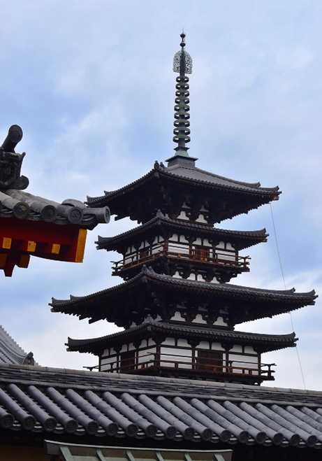 東塔。34.1メートル(相輪含む)。現存する江戸時代以前に作られた五重の塔としては6番目の高さ。