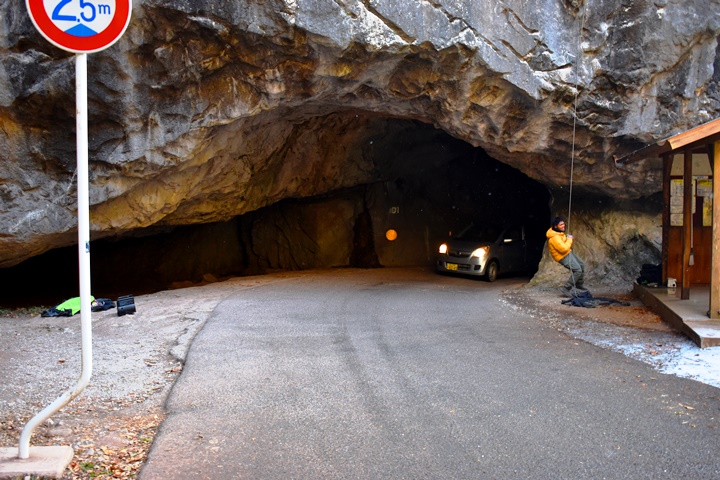 第2トンネルに近い方の出口付近のスペースに車を停め、降りていく。