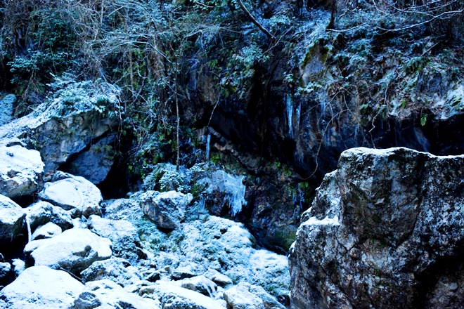 アノつららの連続が滝か?いや、もう少し奥のほうのような気もするし。