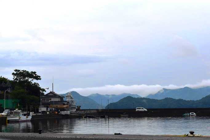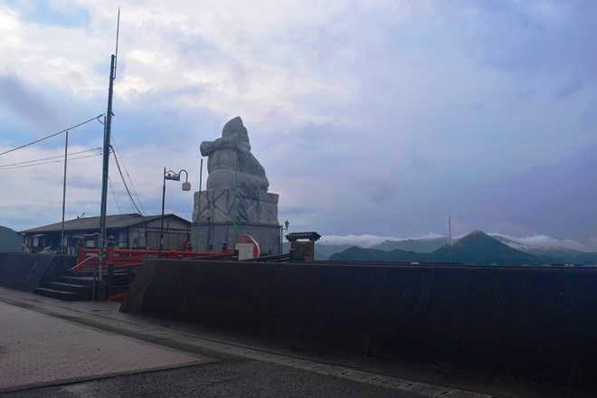 天草市倉岳町、浜田港から、日本一のえびす像が見える。