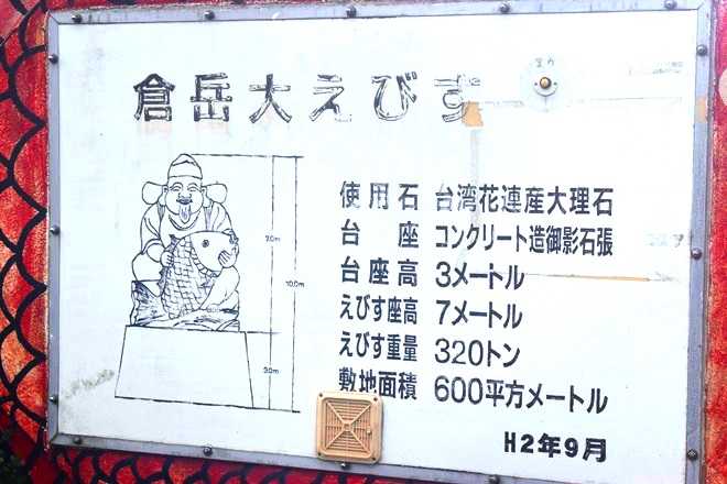 台湾大理石。高さ台座含め10メートルの日本一のえびす像。