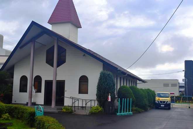 昭和26年、カトリック教会が設立。現在の聖堂は、2代目。天草には3つのカトリック教会、世界遺産の崎津教会(崎津天主堂)、大江教会(大江天主堂)、そしてここ本渡教会の3か所がある。